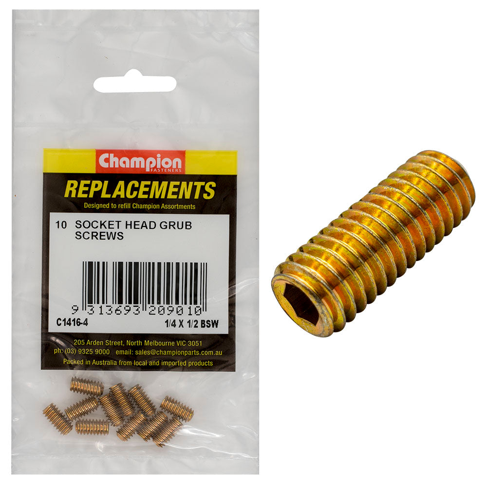 Champion 1/4in x 1/2in BSW Socket Grub Screw -10pk