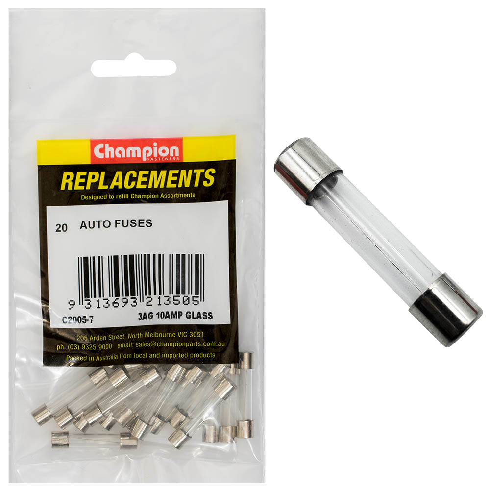 Champion 3Ag 10Amp Glass Fuse -20pk
