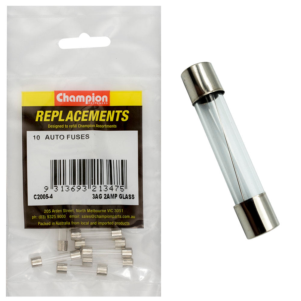 Champion 3Ag 2Amp Glass Fuse -10pk