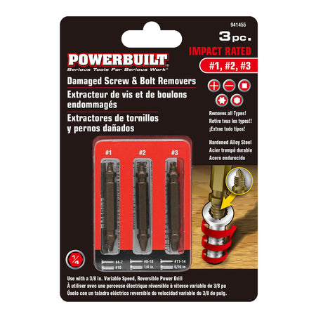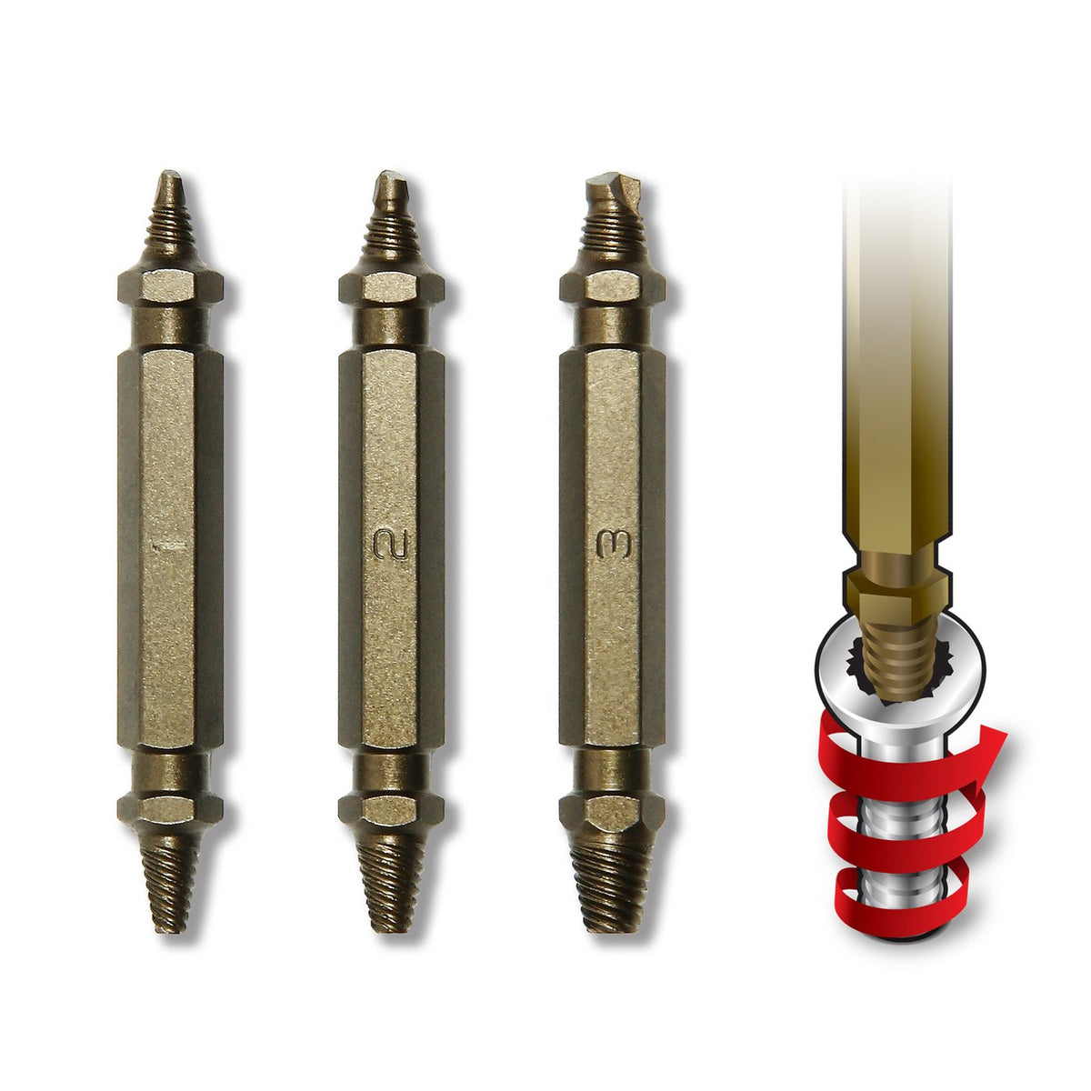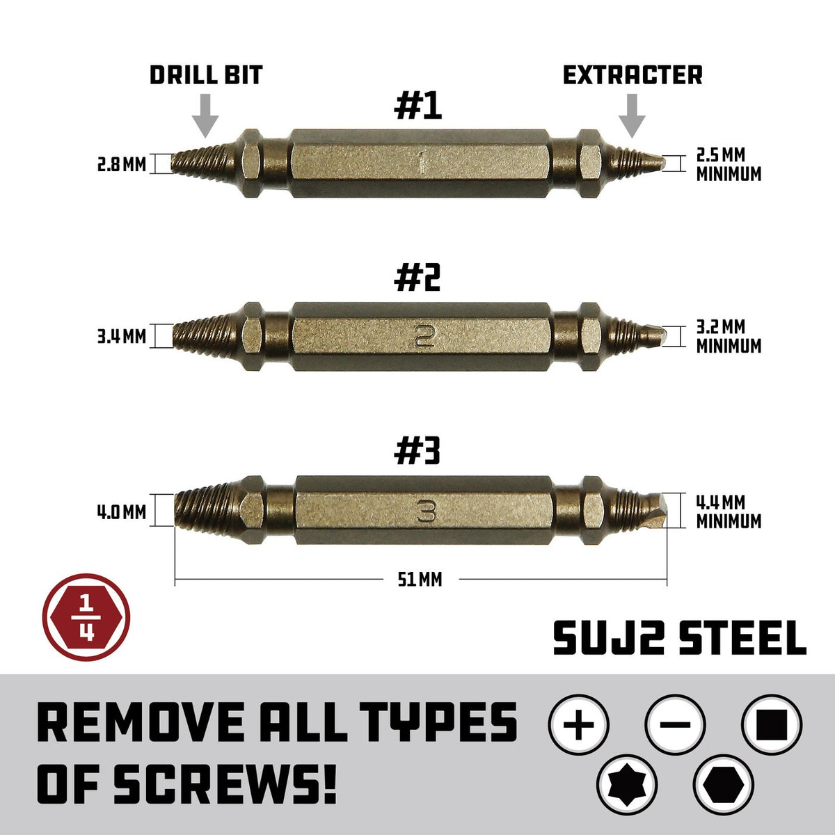 Removes many types of screws and bolts (Including Phillips, Slotted, Robertson, Hex, Torx)