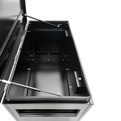 - The lid is fitted to the body with four wide stable stainless-steel hinges and two gas struts for extra support and easy opening.