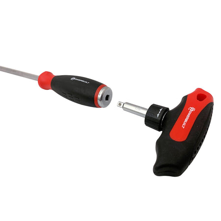 1/4” Square driver hole on the handle end allows use with drive tools or ratchet handle included
