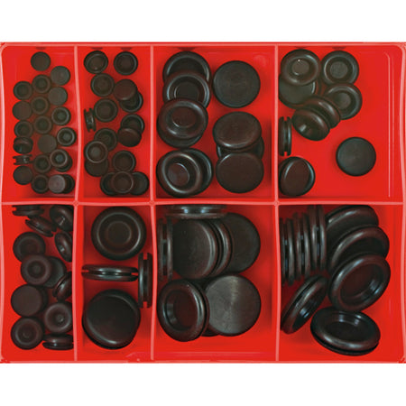 CA90 | Champion 91pc Blanking Grommet Assortment Rubber 8 Sizes: 8mm to 28mm (Panel Hole Size) 91 Pieces Replacement Packs Available Part # Size Pack Qty C90-1 8mm 20 C90-2 10mm 15 C90-3 19mm 15 C90-4 16mm 10 C90-5 12mm 10 C90-6 22mm 5 C90-7 25mm 8 C90-8 28mm 8
