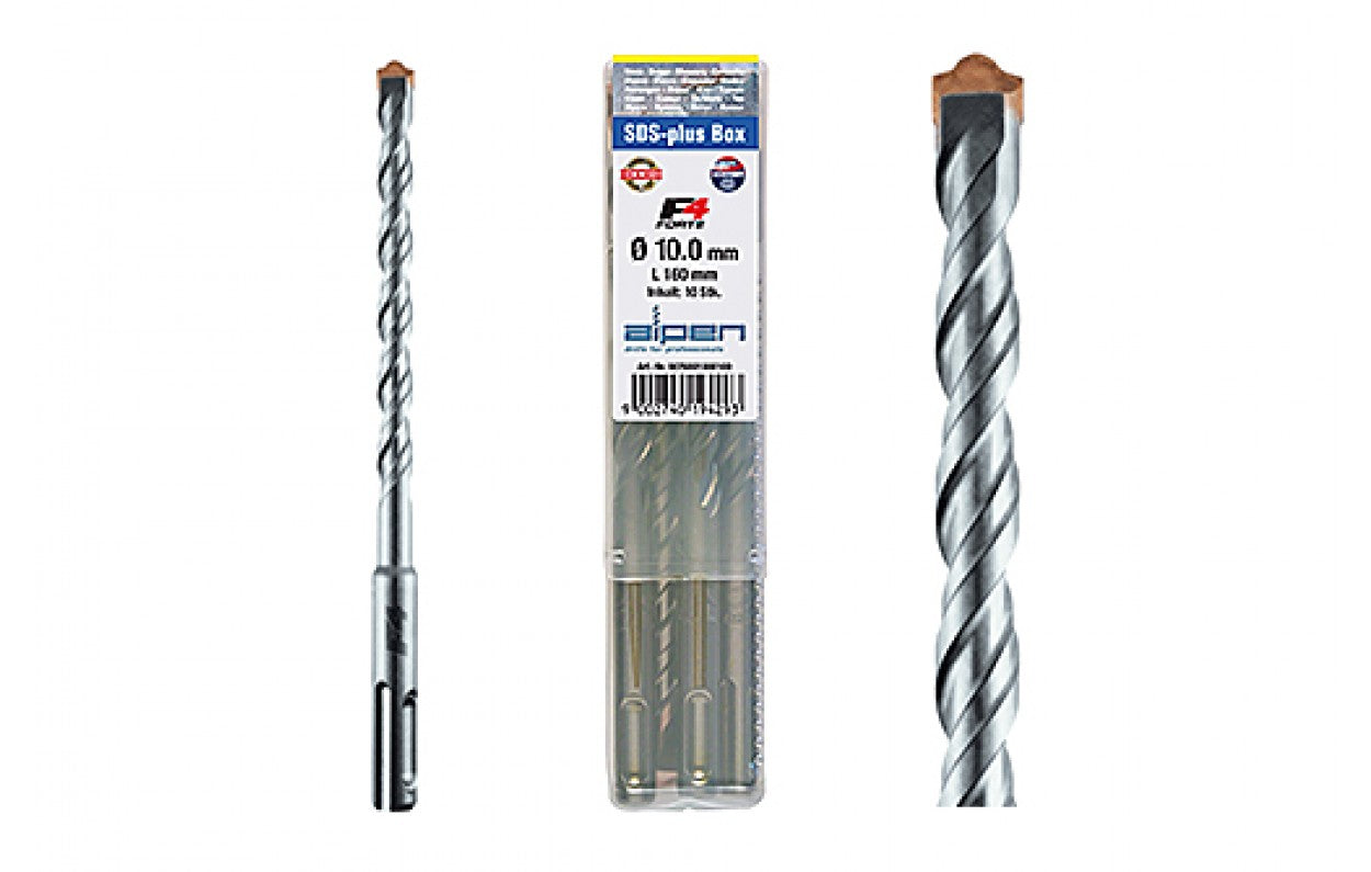 SDS Plus high performance drill bit with a patented 4 x stepped profile and patented tip promotes low wear and very long service life.