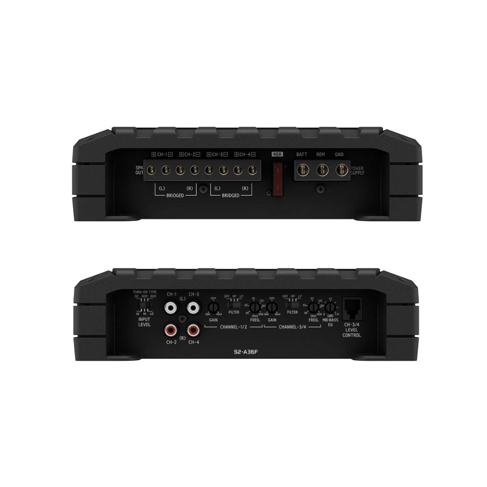 The Next-Gen Alpine S-Series S2-A36F 4-Channel Amplifier is Hi-Res Audio Certified and able to reproduce up to 40kHz frequency response. This ultra-wide bandwidth coupled with the elevated S-Series design brings out a new benchmark for entry-level performance and price.