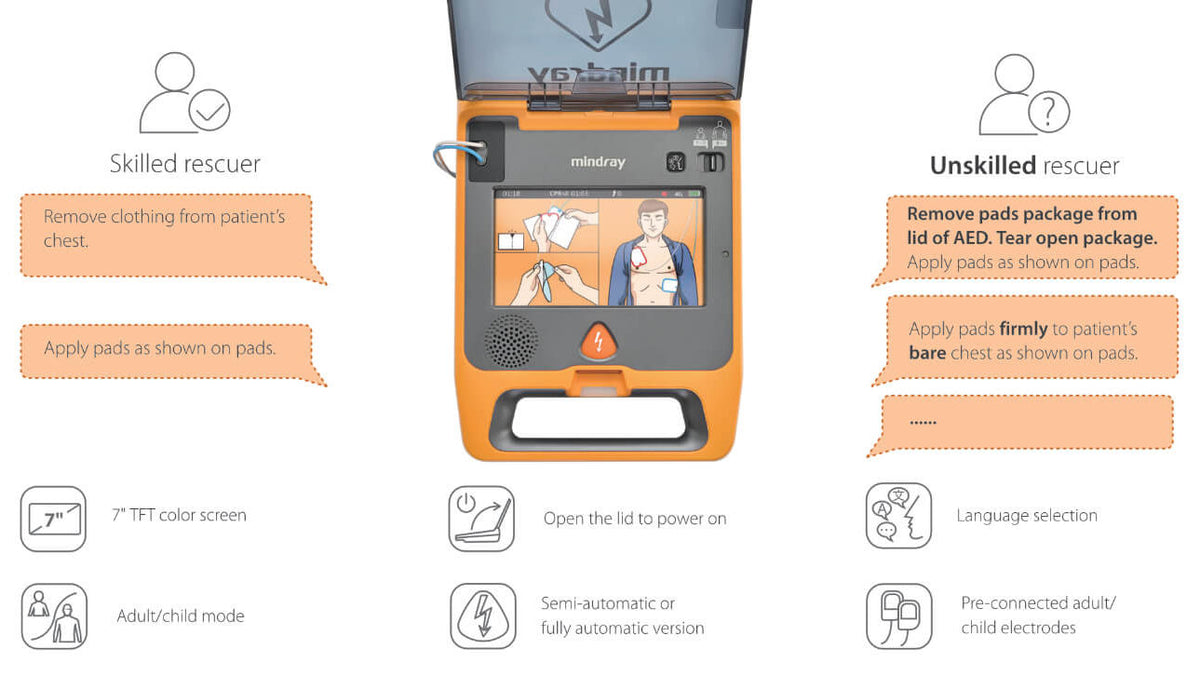 Delivers the first shock in under eight-seconds; powers on in two-seconds, ECG analysis in five-seconds and no extra time needed for charging