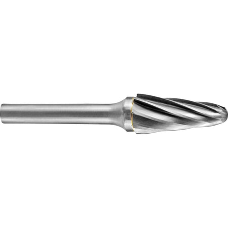 CARBIDE BURRS TAPERED - RADIUS END Head Diameter: 1/2 Flute Length: 1-1/8 Overall Length: 2-7/8 Shank Diameter: 1/4 Angle: 14 Style: Aluminium Cut (AC)