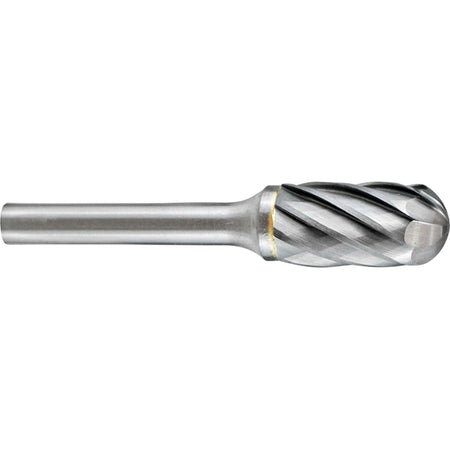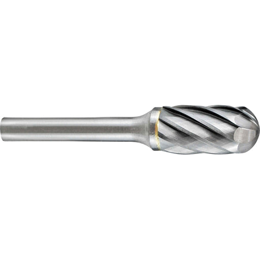CARBIDE BURRS CYLINDRICAL - RADIUS END Head Diameter: 3/8 Flute Length: 3/4 Overall Length: 2-1/2 Shank Diameter: 1/4 Style: Aluminium Cut (AC)