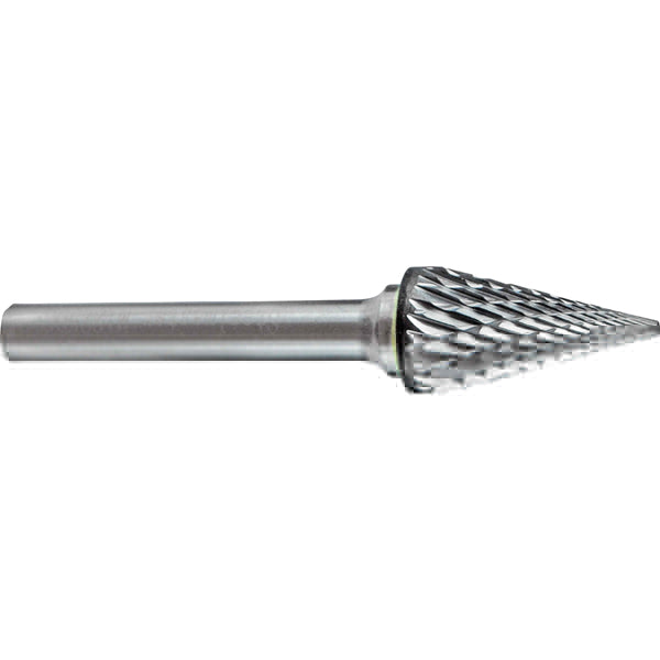 CARBIDE BURRS - DOUBLE CUT CONE SHAPE Head Diameter: 5/8 Flute Length: 1-1/8 Overall Length: 2-7/8 Shank Diameter: 1/4 Angle: 31 Style: SM-6