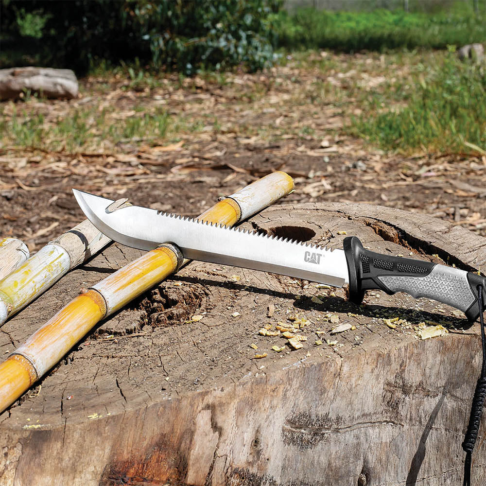When you need to cut, slice, and chop through thick brush or need a durable camping blade, the CAT Machete is your perfect solution.