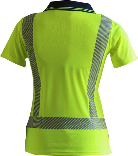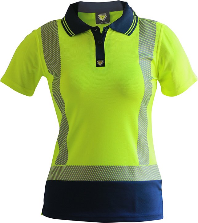 Microfibre fabric, heat applied segmented tape, buttoned front closure, colour trimmed collar, dark lower front panel that hides dirt and grease