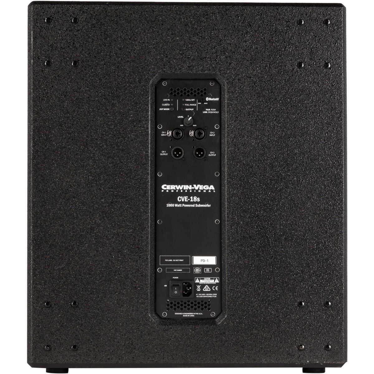 The Cerwin Vega CVE-18S powered Subwoofer features 1000 watts of Class D Power with an 18" woofer. Besides the 2 Combo XLR/TRS Inputs and one XLR output, there are 2 easy-to-use DSP driven Modes to tailor your sound. In addition each CVE speaker allows audio streaming via Bluetooth from any smartphone or tablet, mono or even stereo paired. The rigid lightweight design of the Plywood enclosure combined with 126 dB of headroom, makes the CVE-18s the ideal subwoofer solution for live applications, mobile DJs, houses of worship, clubs, restaurants, conference rooms, and more. Listen for yourself to Cerwin Vega's 65 years of experience.
