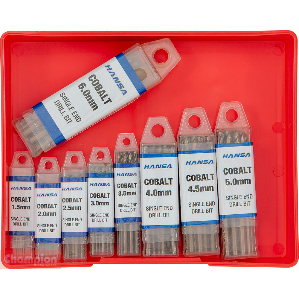 CA80 | Champion 90pc Metric Cobalt Drill Bit Assortment Metric Cobalt Steel Single End 9 Sizes: 1.5mm to 5mm 90 Pieces