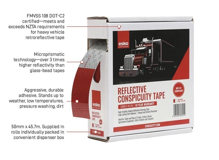?FMVSS 108 DOT-C2 certifiedmeets and exceeds NZTA requirements for heavy vehicle retroreflective tape