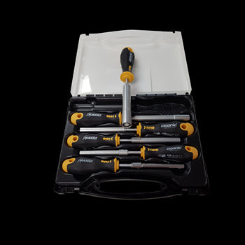Series 400 Ergonic 6-pcs. M-Tec case with different nut drivers which dive over screw threads and hold screws!