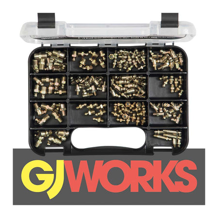 GKA144 |144 Piece MM/SAE Grease Nipples 14 Sizes M6 to M8 UNF 1/4 BSF 1/4 NPT 1/8 GAS 1/8 Straight 45 67 90 Zinc passivated