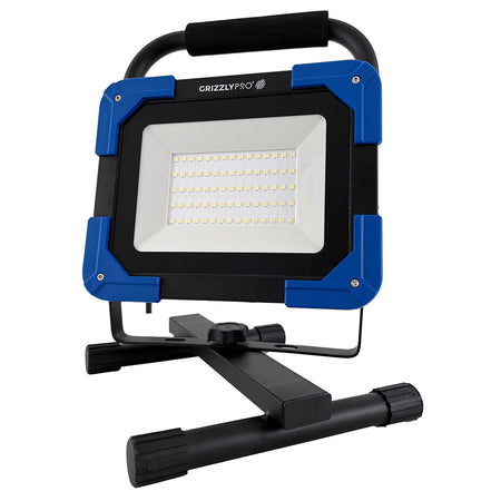 Grizzly has incorporated a clean slimline design for the Edge series, allowing it to look slick outdoors or indoors or save space when stored. The Edge work light is easy to use. Simply place it down on its base, hang it, or secure it to a tripod, plug in the power cord, and switch it on.