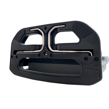 Before fitting your battery on the adaptor, lift the pin/bar suited to your brand and slide in your battery.