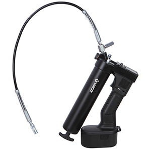 GROZ 19.2V CORDLESS GREASE GUN 450GM (6000PSI) 19.2V cordless grease gun that provides unmatched power torque & efficiency resulting in higher pressure & more grease per battery charge**. Comes with blow moulded carry / storage case. Specifications: • Powerful 19.2V High Torque Motor • 1.5Ah Ni-Cd Battery Pack (x 2) • 1 Hour Quick Charger • 6000 PSI (413 BAR) Output Grease Pressure • Automatice Air Bleeder & Bulk Loader • 30in High Pressure Hose with Spring Guard on both ends (prevents hose from kinking) • High Pressure Grease Coupler Applications: Designed for use by mechanics technicians maintenance staff farmers etc. for everyday greasing & preventive maintenance jobs from automotive trucking & fleet to agriculture construction & industry. ** Each battery charge provides power to dispense up to 6 x 450gm cartridges in free flow condition.
