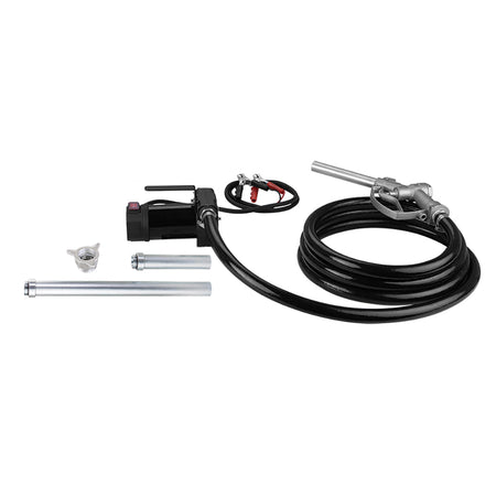 GZ49502 | Groz Electric Diesel Pump 12V DC - Drum Mount Style The Groz V Series Electric Diesel Pump is designed for heavy-duty use in agricultural construction automotive and industrial applications. The pump is manufactured from heavy duty cast iron for long lasting durability. The self-priming vane pump design enables efficient diesel transfer with minimal effort. The bypass valve helps protect the motor by keeping it safe even when the outlet is closed. With a duty cycle of 30 minutes ON and 30 minutes OFF it offers reliable performance during demanding tasks. Ideal for on-the-go refuelling the pump provides efficient fuel transfer while maintaining safety and performance. Includes Pump Drum Bung Manual Nozzle 3M long Discharge hose 2pc threaded Suction tube 2M long Battery cable with fuse & aligator clip Specifications Flow Rate: Upto 45 LPM (12GPM) Motor Rating: 1/4 HP 12V DC Amp draw from battery: 24 Amp Internal Bypass Valve: Yes Outlet: 3/4 NPT(F) Pump Inlet Threaded: 1 Pump Outlet Threaded: 3/4 HB Hose Length: 3 meters Battery Cable Length: 2 meters with fuse & aligator clip 5 Vane Motor Self-priming vane pump design Recommended Use with Diesel Kerosene