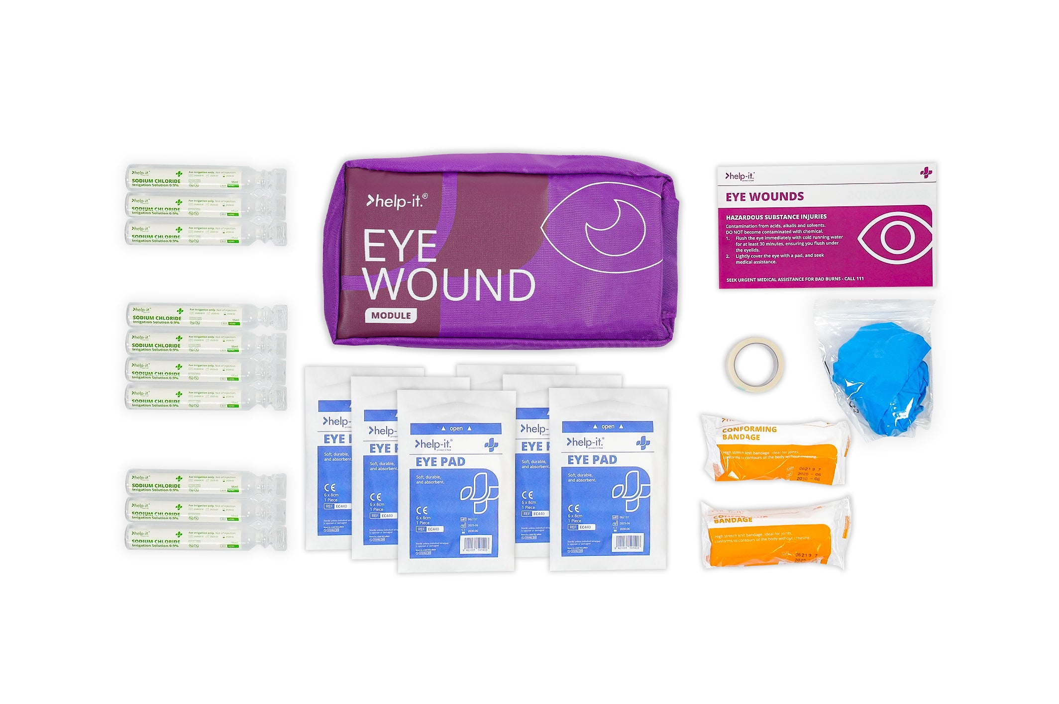 This colour-coded module is designed to manage eye injuries quickly and effectively. Suitable as part of the Help-It Modular First Aid Kit or as a stand-alone kit for environments with eye injury risks.