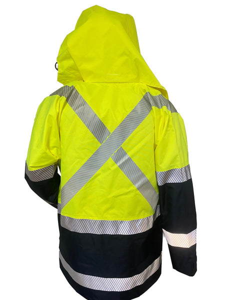 Clearance - D/N Jacket, PU, X-Back, Hood, Yellow/Navy, Size Medium