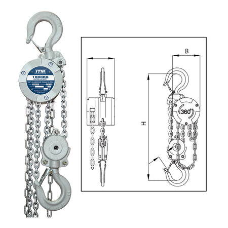 ITM Chain Block, Aluminium 360 Degree, 1000kg, 3M Lift