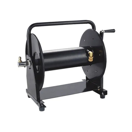 TM541-060 | ITM Pressure Washer Hose Reel 60M with Couplers Features Heavy-duty steel construction Easy hand rewind with locking mechanism Durable rubber feet Specifications 1.2m Leader hose Hose capacity: 60m x 3/8 Inlet: 3/8 BSP male plug Outlet: 3/8 BSP female socket Hose not included