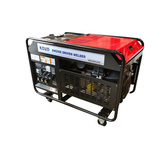 The Kovo 320 Welder Generator is a compact but powerful 300Amp Brushless DC welding Power Source amp Generator Its V Twin Kohler produces 32Volts300Amps of both Constant Current CC and Constant Voltage CV welding output power capable of running a Suitcase Wire Feeder with 0916mm Wire Running 26mm Electrodes for Arc Welding and 5 and 6mm Carbons for Air Arc GougingIt has 3KVA of AC power enough to run all your portable tools on site grinders etc Its small compact size allows for easy transportation on the back of a Ute or trailer and allows for easy moveability once on site It has an Auto Idle Function which automatically increases the RPM when load is applied saving fuel and limiting noise on site this machine has it all Powerful 300Amp Brushless DC welding Power Source amp Generator 3KVA of AC power Auto Idle Function Stepless Current amp Voltage Controls for precise setting Electric Start Digital Hour meter for keeping track of run time for servicing Fuel Site Gauge Stepless Current amp Voltage Controls for precise setting