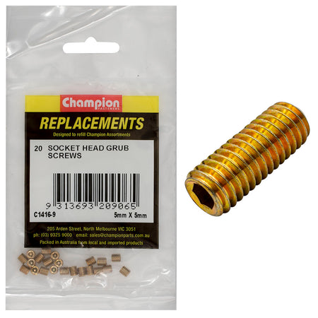 Champion M5 x 5mm Socket Grub Screw -20pk
