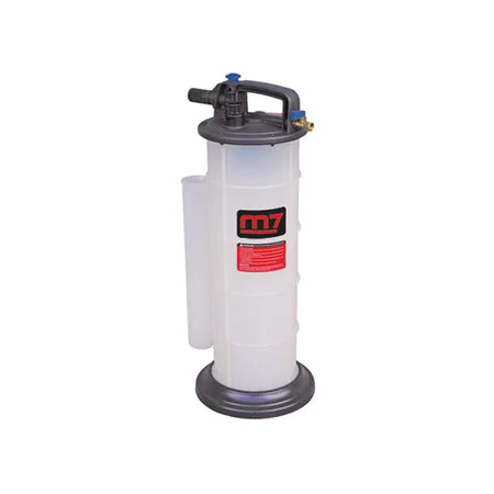 M7-SM0902|M7 Pneumatic Fluid Extractor 9L Capacity FEATURES Enables removal of vehicle fluids without requiring to jack up vehicle. Automatic shut off of extractor unit when extractor tank reaches full capacity. SPECIFICATIONS Air Pressure: 70 - 170PSI Net Weight: 4.7kg Capacity: 9.0L