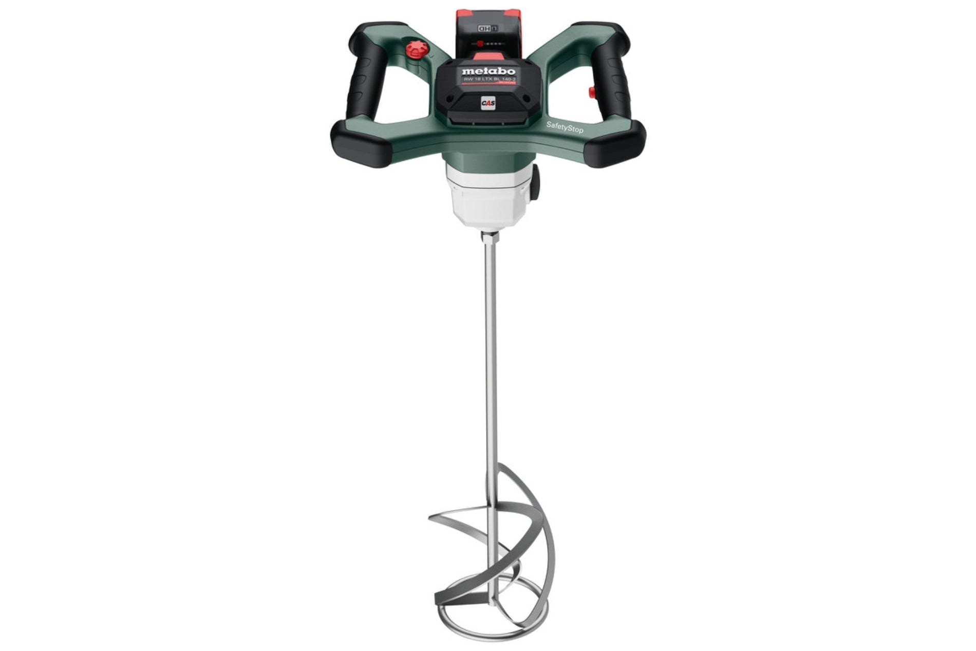 Universal cordless stirrer with two speeds for powerful stirring and mixing up to 50 litres.Safety stop for safe and clean working: Quick shutdown in continuous mode in the event of jamming or loss of control.Quick stop: The machine stops immediately when the speed control trigger is released.High torque thanks to two-speed gearbox for viscous materials.Powerful Brushless motor for greatest efficiency and long battery pack runtime.Vario Tacho Constamatic (VTC) Full-wave Electronics with Thumbwheel: For working at customised speeds to suit the application material and speeds that remain almost constant, even under load.Electronic soft start for splash-free working.Overload protection: Protects the motor from overheating.Comfortable guidance thanks to rubberised, ergonomic handles and balanced centre of gravity.Protected position of the battery pack between handles with good visibility of the capacity display.