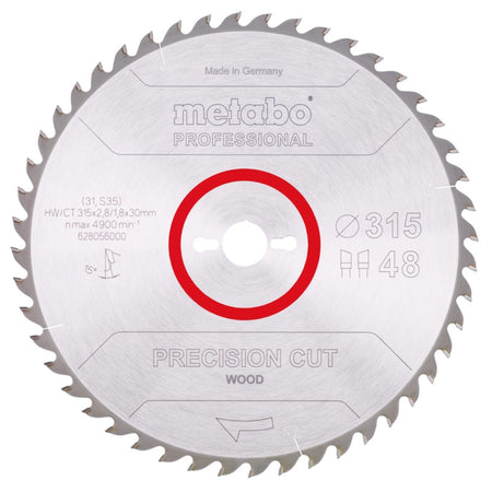 Metabo 315x30mm Z48 WZ 15 Precision Cut Wood Saw Blade - Professional