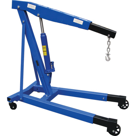 PE1193 - Heavy Duty Engine Crane For raising lowering and transporting of automotive engines transmissions and other heavy shop loads. 3000Kg Safe Working Capacity. Adjustable Boom 500kg 1000kg 1500kg & 3000kg. 12 Ton Long Ram Jack. Adjustable Working Range: 1200-1830mm Lifting Range: 0-2800mm Cast Iron Castors (2 x swivel) Net Weight: 126Kg. Supplied flat packed assembly required.