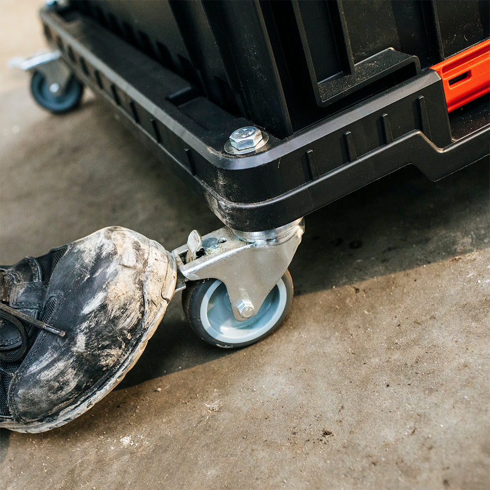 Mounted to the front of the platform are metal swivel caster wheels equipped with brakes that provide excellent manoeuvrability and protect the entire set against undesirable movement.