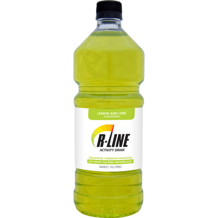 RL01 - Isotonic Electrolyte Activity Drink Concentrate 1L Flavour: Lemon/Lime Makes 10 Litres | 40 Servings (250ml) Electrolyte Level: 30mmol / Litre Carbohydrate Level: 5g / per 100ml Energy: 82.5kj / per 100ml Rehydrate | Refuel | Rebound - R-Line™ Activity Drink - Workplace and Recreation Hydration R-Line™ Activity Drink is an isotonic electrolyte drink that has been specifically formulated for lower intensity activities like work and recreation. Scientifically formulated at a leading NZ university for Kiwi conditions R-Line™ is made in NZ for New Zealanders! Over 35% less sugars and more total electrolytes than other leading brands. Perfect for hard working builders electricians crawling around roof spaces and those covered in PPE from hard hat to steel caps in the middle of the summer. R-Line™ Activity Drink is also perfect for your drink bottle on a long trek or kayak fishing mission or if you have just woken up feeling a little dehydrated on the weekend. Whatever your need this bottle of goodness will help keep you going at full speed. R-Line™ is made with multiple carbohydrate sources and natural essences for an energy boost that’s easy to stomach. R-Line™ is also gluten free. Ingredients: Water sucrose glucose acidity regulators (330 331) sodium chloride natural lemon and lime flavour preservative (202 211) colour (102 133). Made in NZ from local and imported ingredients. Store in a cool dark place.