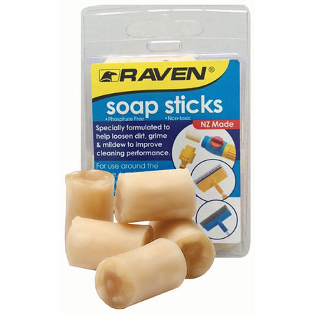 Raven Soap Sticks Phosphate Free Non-Toxic Specially formulated to help loosen dirt grime and mildew to improve cleaning performance. For use around the home boat and car. Use with Raven Telescopic water bruses. Made in New Zealand.
