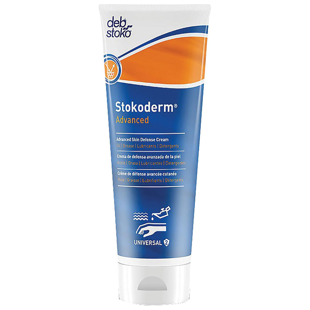 SDA100ML | Stokoderm Advanced Cream Advanced Skin Protection Cream 100ml Tube Features Perfumed Silicone-Free Benefits Universal unique dual action formulation - protects the skin from varying types of heavy contamination while facilitating skin cleansing. Advanced protection film - unique formulation forms a multi-functional protection film on the skin surface; effective against a wide range of substances helping to stop stubborn types of dirt from clinging to the skin. Contains Algin - a natural film building hydrocolloid which helps strengthen and reinforce the protective film on the skin for greater durability. Special soil-suspending emulsifier - blend of surfactants in the protective layer are activated by pre-rinsing hands with just clean water enabling removal of most soiling; this allows use of a light hand cleanser only to remove any remaining soiling. Where To Use: Heavy changing contamination; gloves not worn