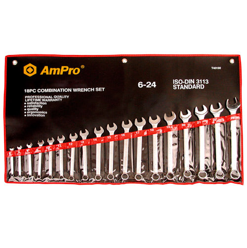 AmPro T40190 18pc Combination Wrench Set 6-24mm