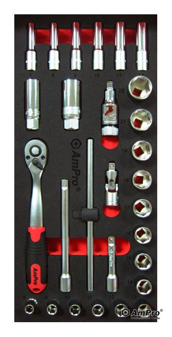 AmPro T45327 3/8"Dr Socket Set 28pc VA Tray