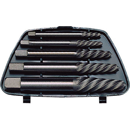 5 Piece Screw Extractor Set Round Shank Set including 5 extractors with left-hand spiral. For extraction of broken screws and bolts. Supplied in plastic case. For Screw: 6 - 20 For Drill Bit: 2.8 3.5 4.0 6.35 7.5mm