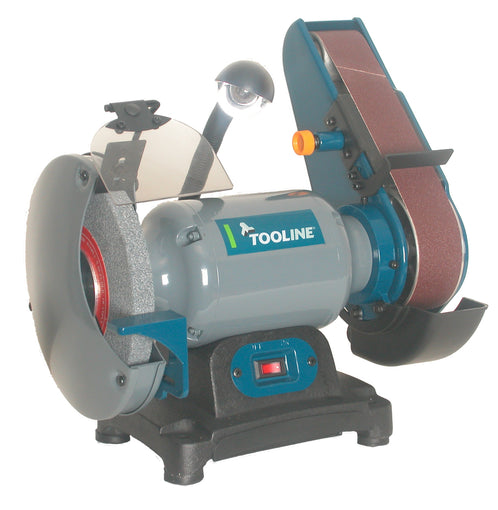 200mm Bench Grinder with a wood sanding attachment. Auto on-light.