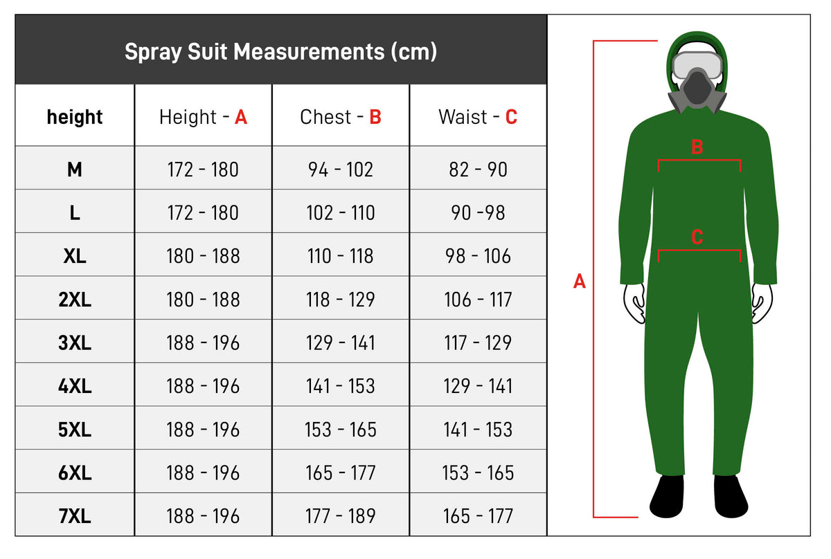 Flexothane fabricone of the most breathable reusable chemical spray suits on the market Foldaway hood in collar, long zip closures under flap with 'touch and close' fastening One inside pocket Kimono sleeves, elasticated cuffs Elasticated waist in the back 100% waterproof and windproof High frequency welded seams Legs adjustable by press studs Stretchable, noiseless, supple, extended durability, comfortable and lightweight EN 14605: 2005 + A1:2009 - Type 4 EN 14786:2006 EN 343:2003 + A1:2007 Sizes: M7XL