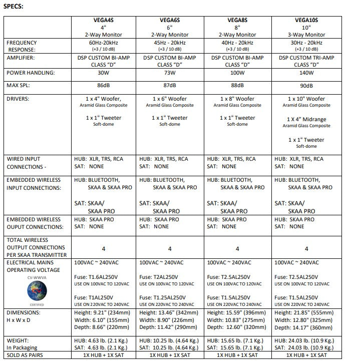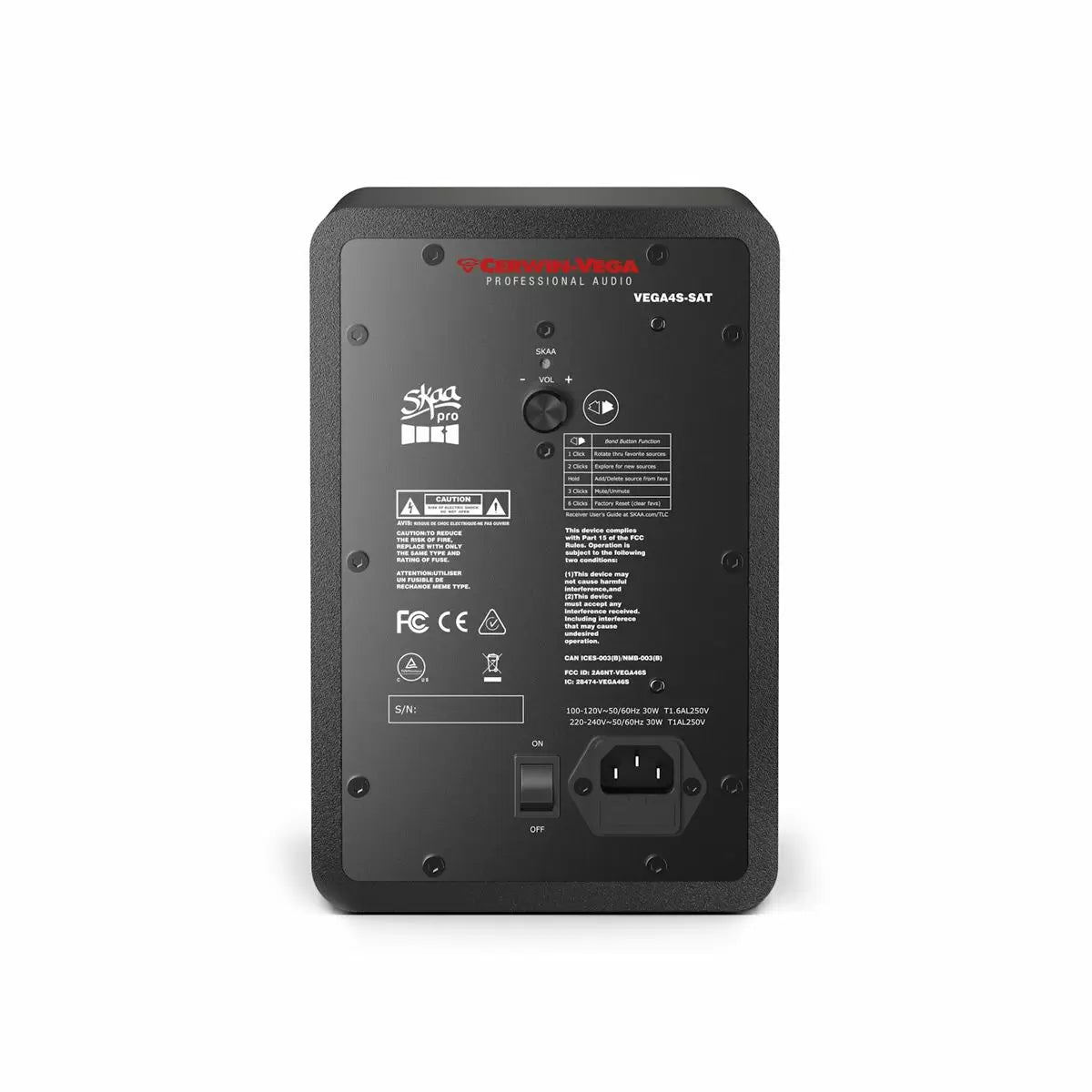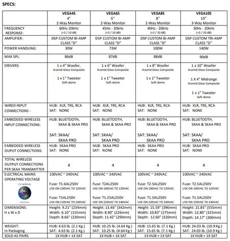 SKAA operating system is a universal, wireless audio protocol designed to transport high fidelity audio at extremely low, fixed latencies over the 2.4 GHz ISM band and is embedded into all of our VEGA Studio Monitors.