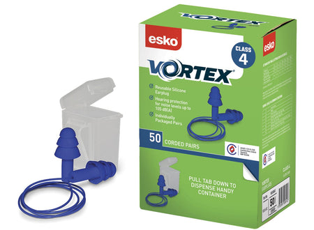 Vortex Earplugs TPR Corded Class 4, 50 pairs Dispenser box