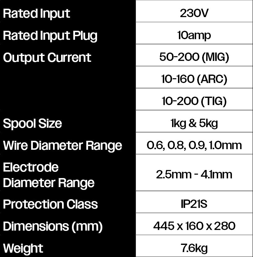 Whether you’re working with mild steel, stainless steel, or aluminium, this all-in-one machine delivers seamless ARC, MIG and TIG welding. Enjoy confident control, consistent results, and the flexibility to tackle a wide range of projects with one dependable unit.